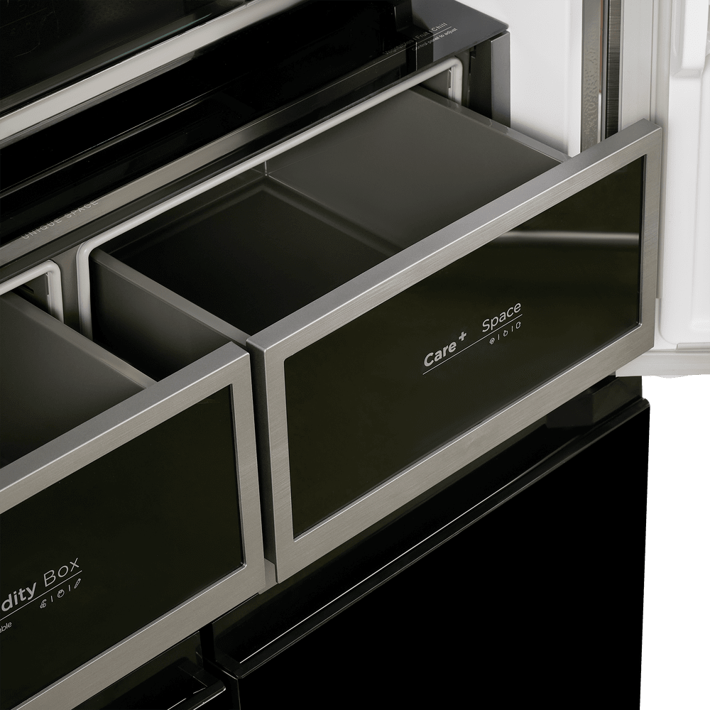 При внушительной общей вместимости модель остаётся комфортной в повседневном использовании: уровень шума 37 дБ подходит для кухни-гостиной, а сенсорная панель на фасаде даёт быстрый доступ к основным режимам — от «Быстрого охлаждения» до «Eco».