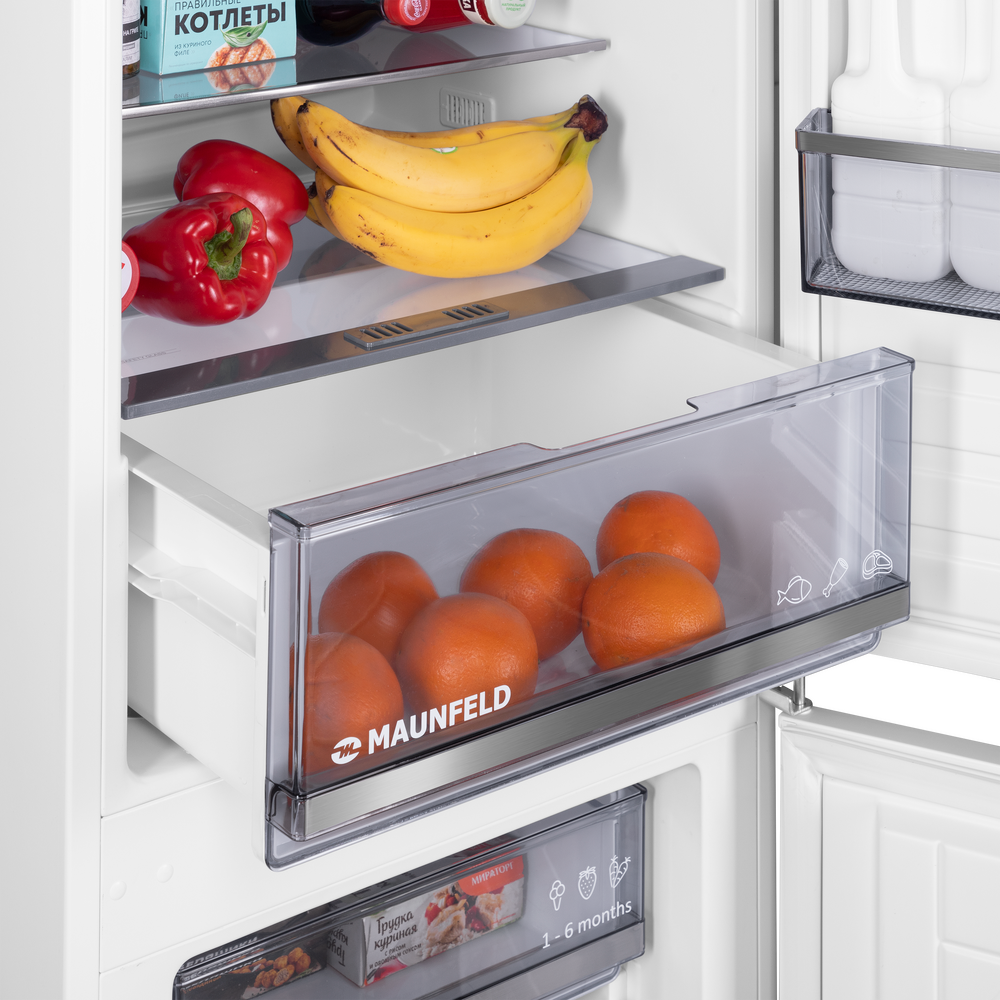 В основе надёжности — инверторный компрессор, который поддерживает стабильную температуру и бережно расходует ресурсы. Встраиваемый холодильник с инвертором MAUNFELD MBF177SWGR Inverter создан для тех, кто ценит продуманную эргономику и современный дизайн без компромиссов.