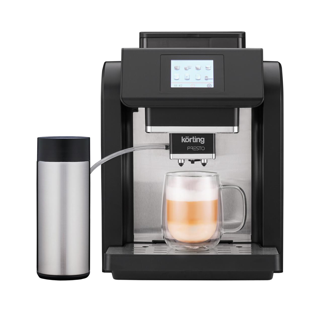 Стойкая молочная пенка легко взбивается с помощью встроенного капучинатора, который легко поддерживать в идеальном состоянии благодаря автоматической очистке. Резервуар для молока, входящий в комплект этой кофемашины от Korting, можно убирать на хранение в холодильник.