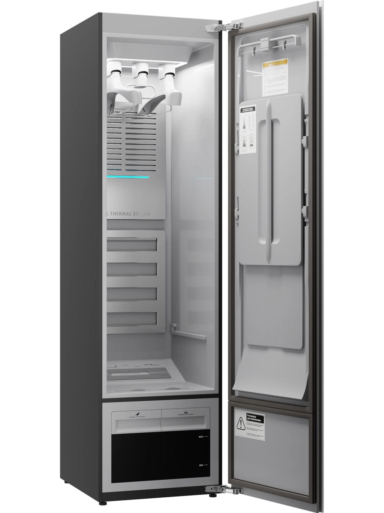 За гигиеническую чистоту отвечает комплекс технологий: плазменная стерилизация в сочетании с паром помогает поддерживать свежесть и порядок, что особенно ценно для семей с детьми и аллергиков. А конденсационная сушка с тепловым насосом бережно доводит вещи до готовности без пересушивания и жесткости тканей.