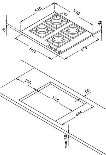Общая мощность конфорок, кВт