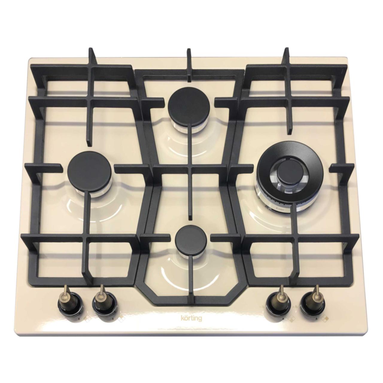 Варочная панель Korting HG 631 CTRB — модель в стиле ретро с ромбовидным расположением конфорок. Эмаль имеет оттенок «слоновой кости», который красиво сочетается с черными чугунными решетками для посуды и бронзовыми переключателями. Электроподжиг и газ-контроль делают использование удобным и безопасным.
